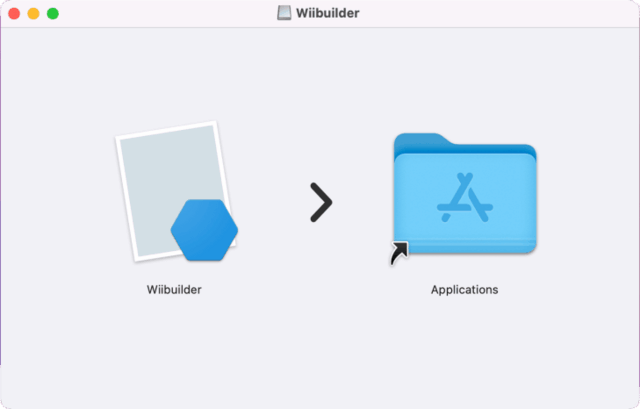Decompress installer. Double-click package, drag Wiibuilder to Applications.