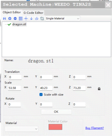 - Right Nozzle Diameter (mm): Diameter of right extruder nozzle. Printer has single right extruder with 0.4mm nozzle.