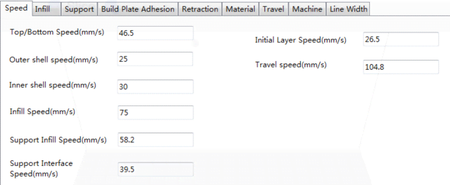 Support Infill/Interface Speed (mm/s): Support infill and top/bottom surface print speed