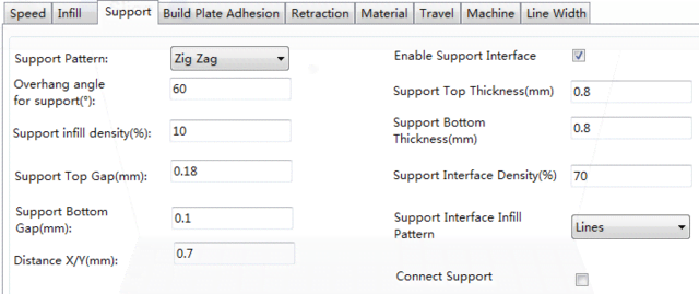 Support Top/Bottom Gap (mm): Distance from support top/bottom to model. Smaller = more effective but harder removal leaving.