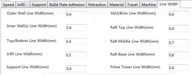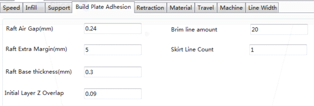Raft Top Line Width (mm): Line width in raft top surface. Thin for smooth top.