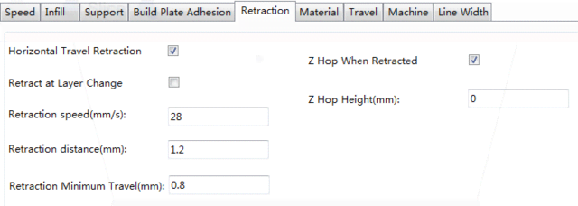 Horizontal Travel Retraction: Enable filament retract during non-print horizontal moves