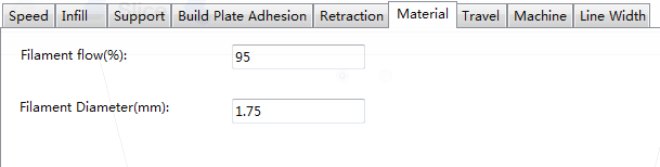 Filament Diameter (mm): Diameter of filament used. Printer only supports 1.75mm.